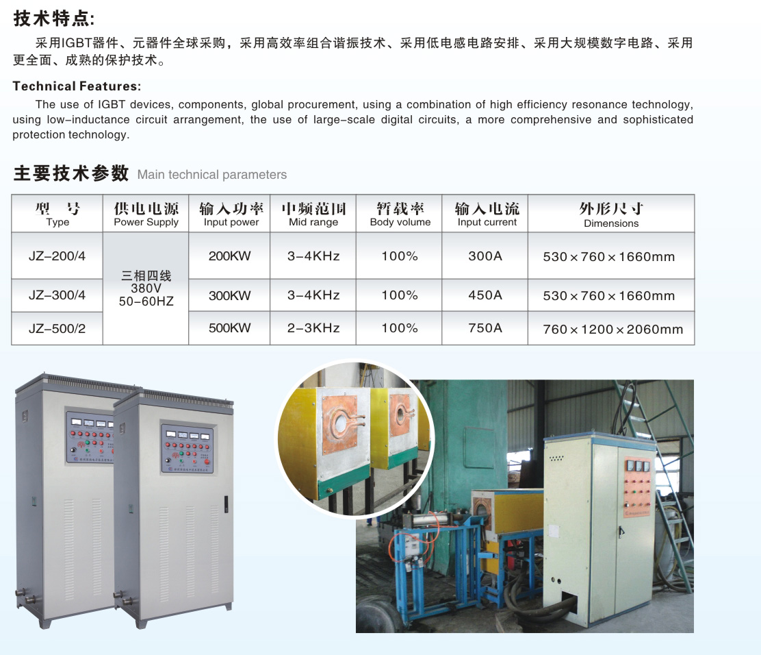 6.采用IGBT,國際先進器件,不要老式可控硅,效率比老式可控硅中頻提高30%-40%,節(jié)電30%-40%。