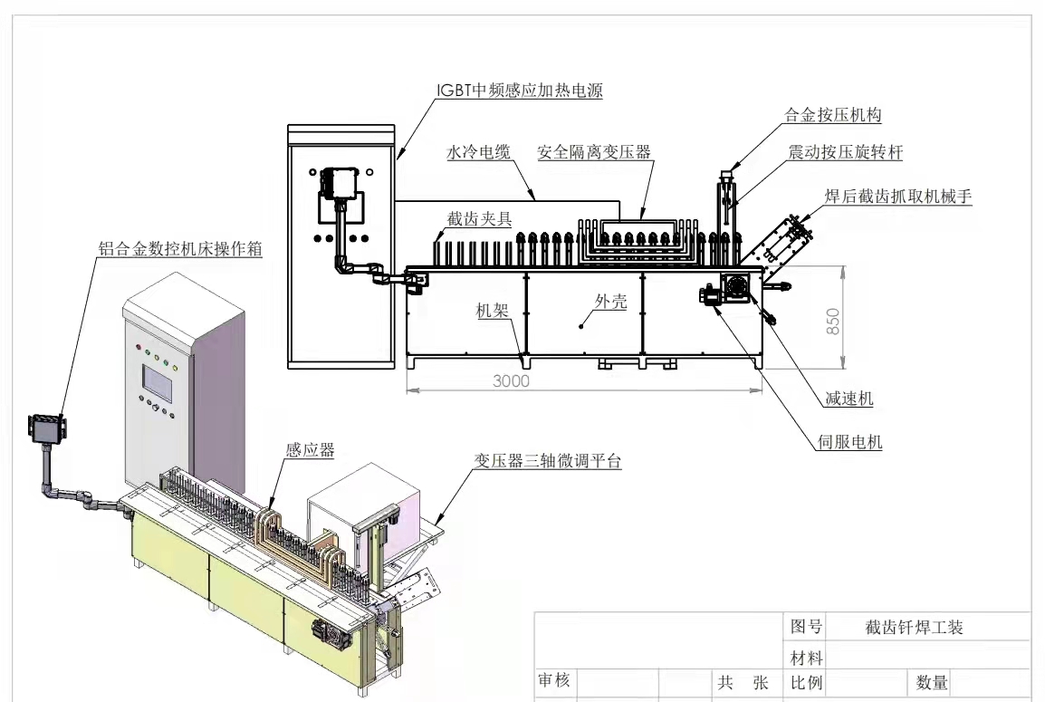 截齒焊接生產(chǎn)線其整套設(shè)備包括中頻感應(yīng)加熱設(shè)備、鏈?zhǔn)叫D(zhuǎn)焊接傳送線、不銹鋼淬火槽、截齒鏈?zhǔn)阶詣?dòng)撈料機(jī)、箱式回火爐、拋丸清理機(jī)、閉市冷卻塔、不銹鋼板式換熱器、等離子耐磨焊等交鑰匙工程。