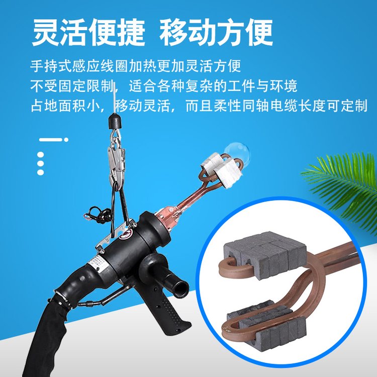 6、手持式對于復雜并難以接近的工件或車間位置,都可實現(xiàn)感應加熱焊接,體積小、節(jié)省空間、方便移動、操作簡便。