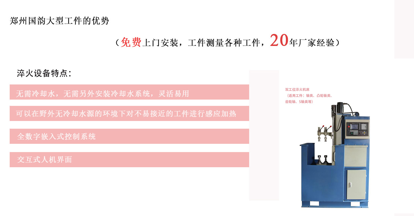 淬火應(yīng)用立式凸輪軸中頻淬火設(shè)備又分為單工位或雙工位兩種,對于凸輪軸總長在1OOOmm以下的,一般是采用工件升降淬火。其優(yōu)點(diǎn)是感應(yīng)器正好在操作者視線近旁,便于觀察...